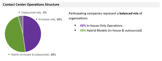 - Hybrid Models Are Rising – Nearly half of contact centers now use hybrid operations, blending in-house and outsourced resources for flexibility and scalability.